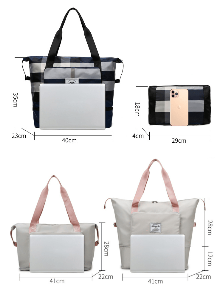 FOLDABLE TRAVEL BAG: The new folding travel bag is made of lightweight oxford cloth, it has excellent waterproof effect in rainy and wet conditions. You can also fold it up, about the size of a handbag.